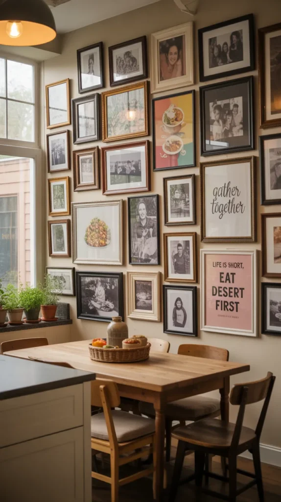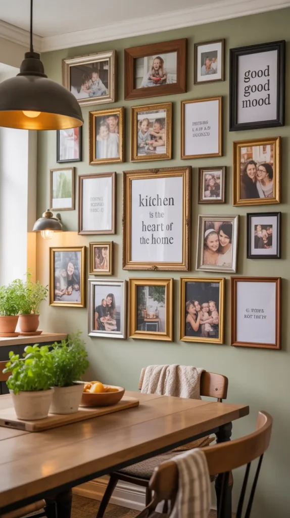A gallery wall makes your kitchen feel lived-in and welcoming, turning it into a space filled with memories.