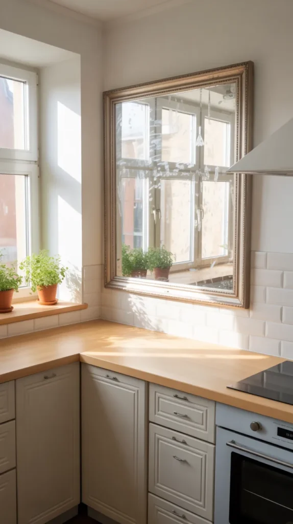 This idea is perfect for small or dark kitchens that need more light. Choose simple frames for modern kitchens or ornate frames for classic styles.