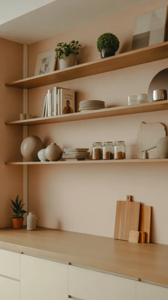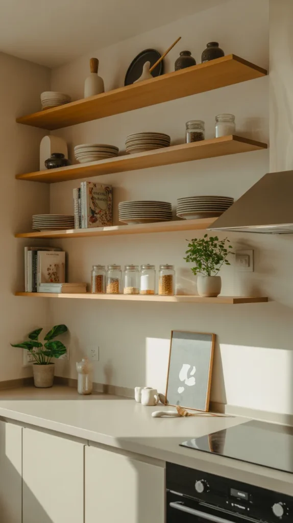 This idea is ideal for small kitchens where efficiency matters. When arranged thoughtfully, functional items become part of the decor.