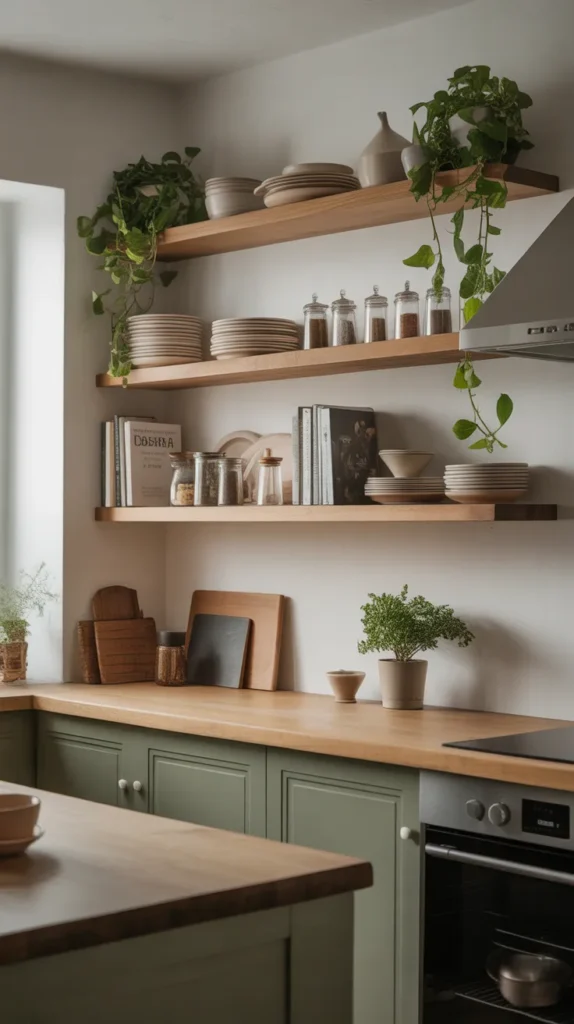 Open shelving also gives you the freedom to update your decor seasonally. Simply swap out accessories, plants, or jars to refresh the entire kitchen without major renovations.