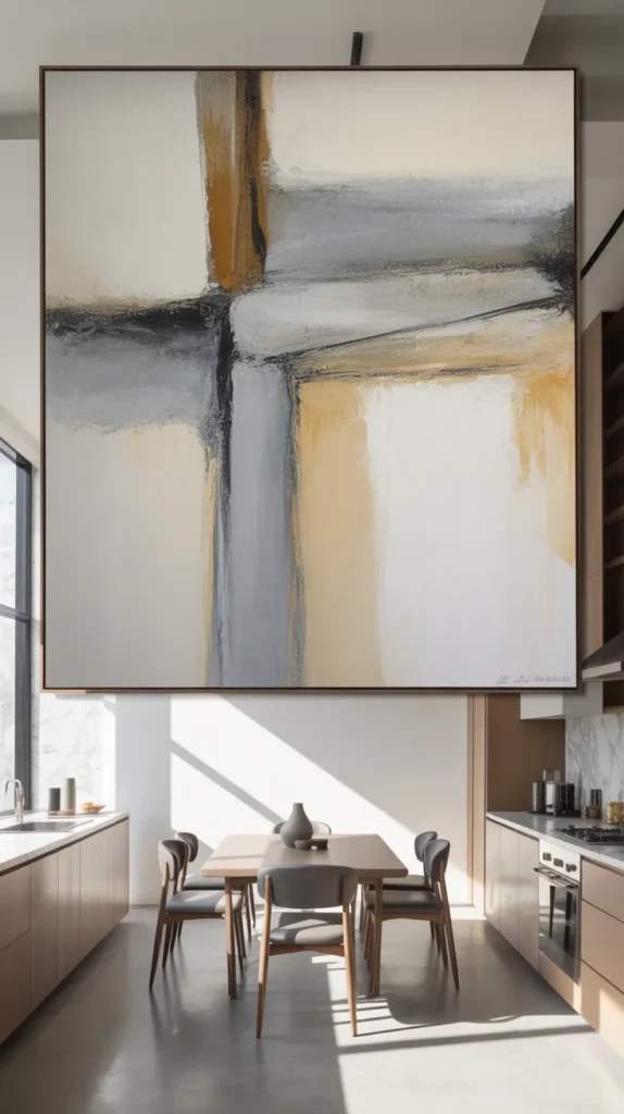 Choose artwork that complements your kitchen’s color scheme. For modern kitchens, abstract or minimalist art works best. For farmhouse or traditional kitchens, vintage prints or hand-painted illustrations add charm. Framing also matters—sleek black or metallic frames look contemporary, while wooden frames feel more rustic and warm.