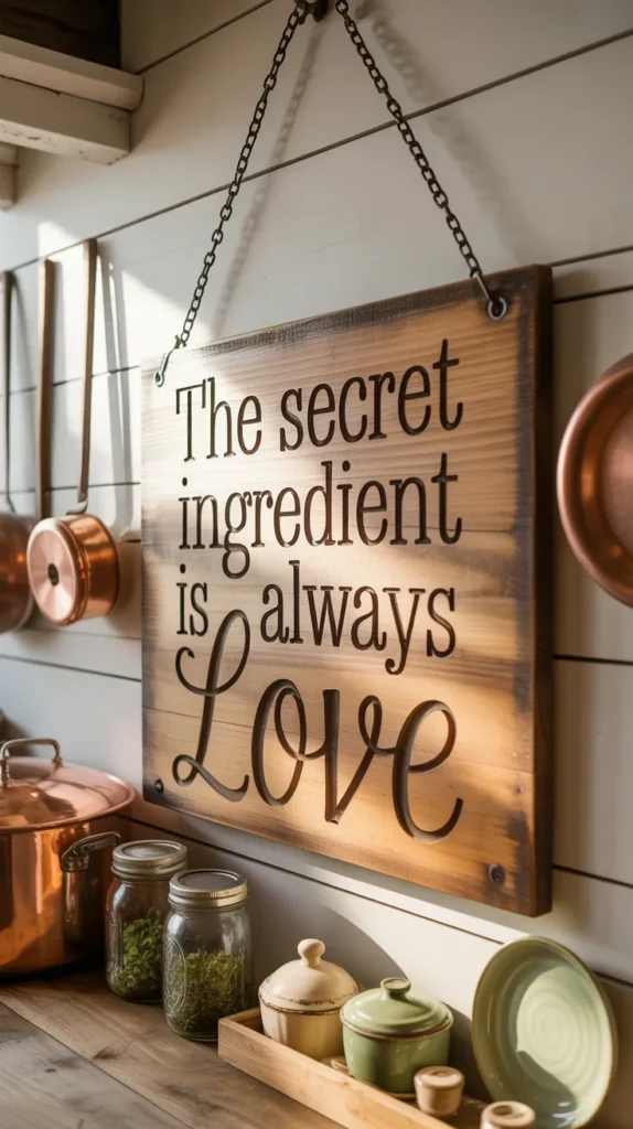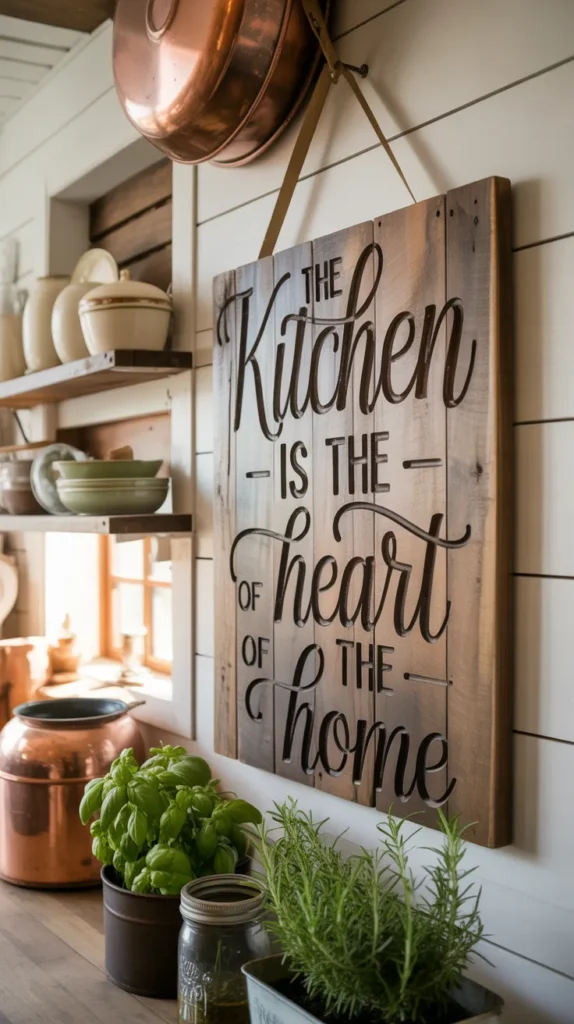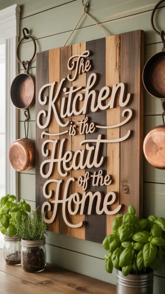 Typography wall decor adds charm and personality. Quotes about food, family, or cooking create a warm and welcoming vibe. Wooden signs, metal letters, or framed prints all work well.