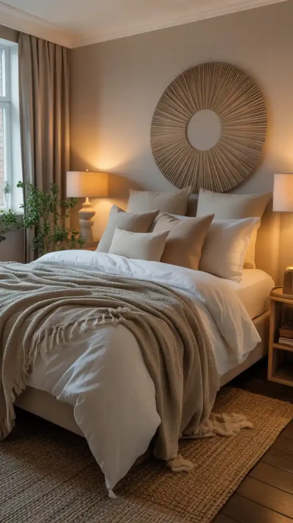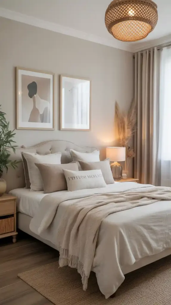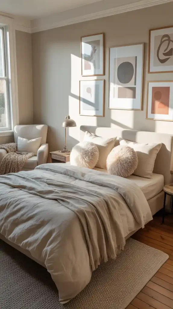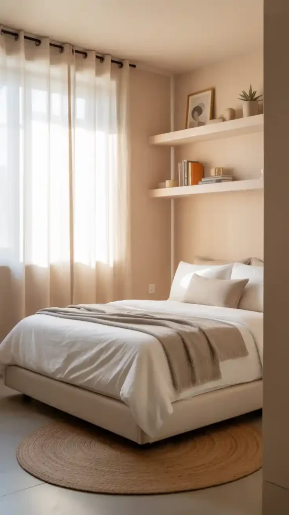 Neutral colors are timeless and make small bedrooms feel larger. Shades of beige, white, cream, and light gray reflect natural light beautifully. You can add texture through linen bedding, knit throws, or a patterned rug. Soft colors provide a calming atmosphere while still keeping things chic and modern.