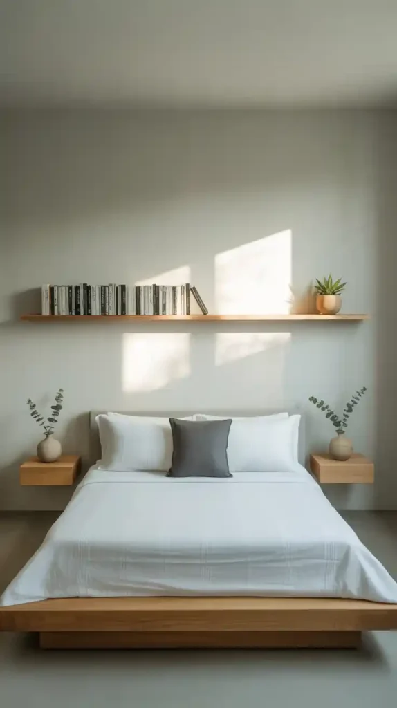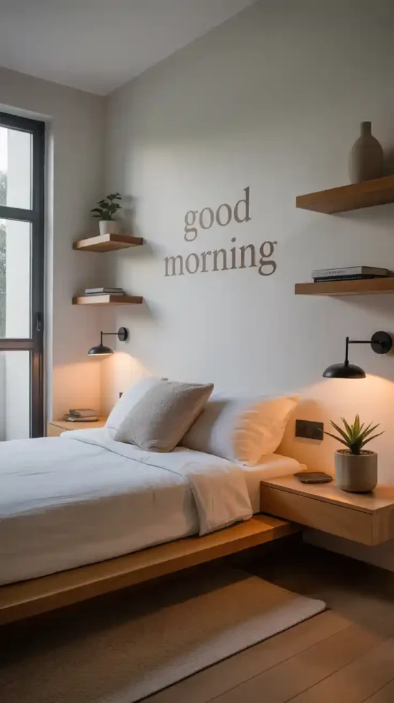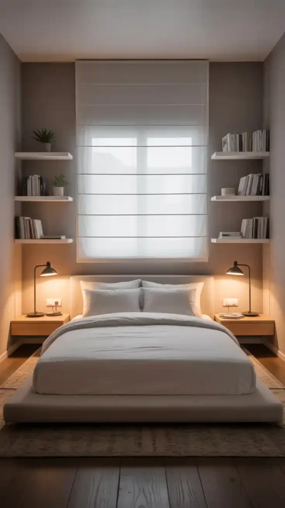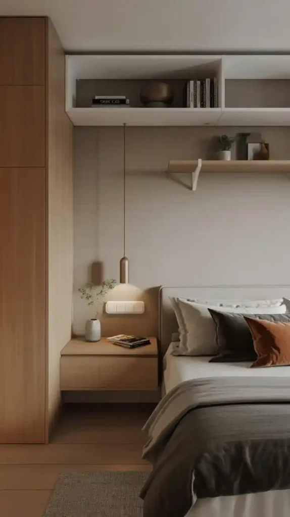 Floating furniture, such as wall-mounted nightstands, desks, or shelves, saves valuable floor space while giving your room a contemporary look. It also makes cleaning easier and adds a light, airy feel to the bedroom. This design idea works especially well in very compact spaces where every inch matters.