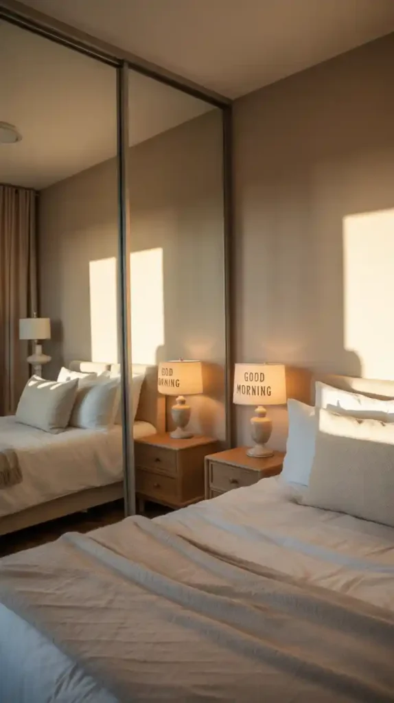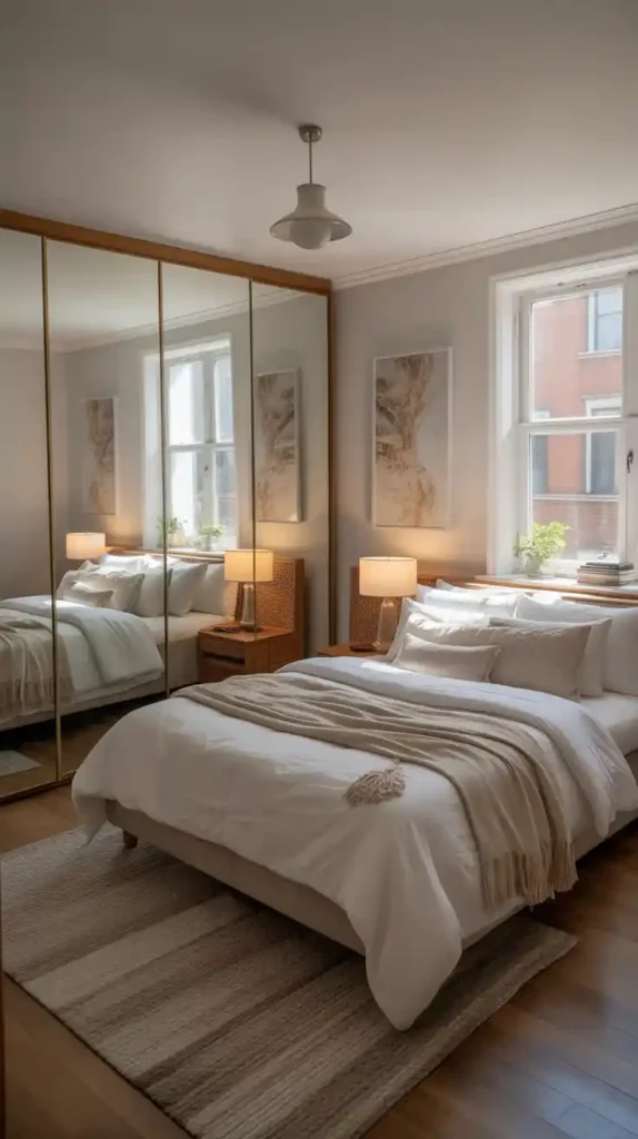 Mirrors are a classic trick for making small rooms appear larger. A full-length mirror placed strategically can reflect light and create depth. Mirrored wardrobes or decorative mirror panels can also enhance the chic look. Besides functionality, mirrors serve as stylish décor pieces that elevate your space.