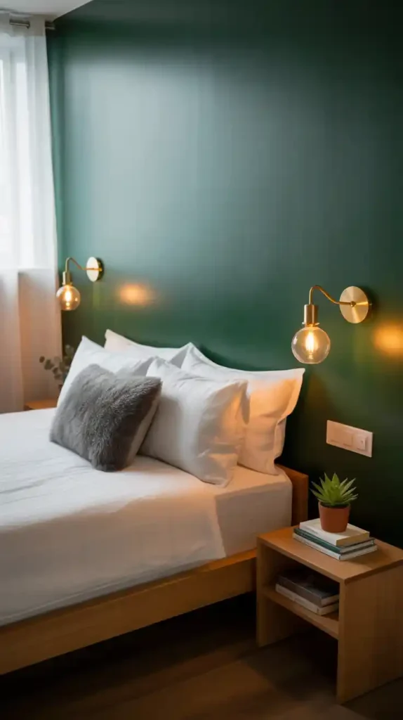 Lighting sets the mood in a small bedroom. Swap out basic ceiling lights for chic pendant lamps, wall sconces, or fairy lights. Choose warm-toned lighting to make the space feel cozy. Wall-mounted or hanging fixtures also save space compared to bulky lamps, giving your room a modern look.