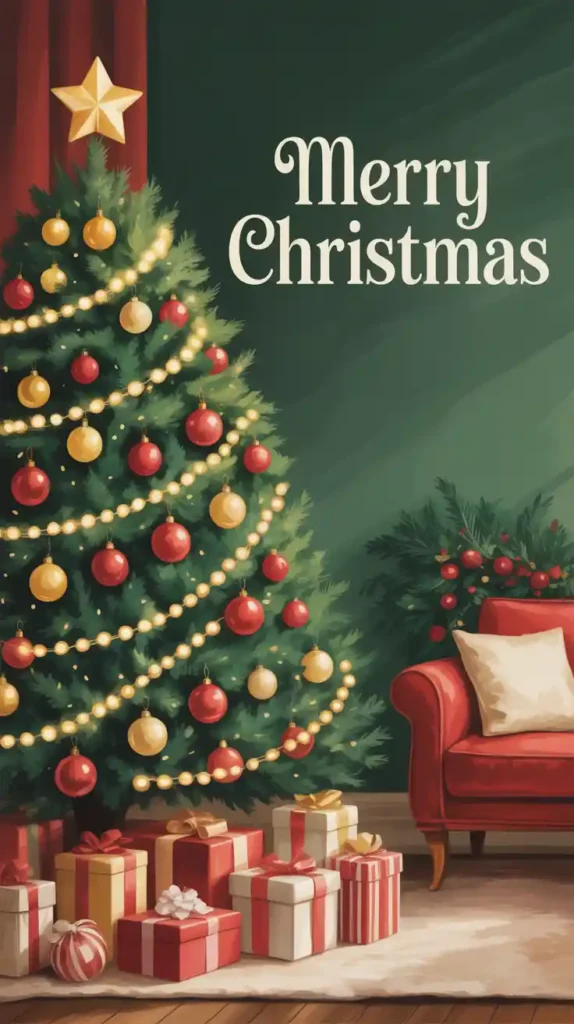 The Christmas tree is the centerpiece of holiday decor. A traditional evergreen tree adorned with ornaments, baubles, ribbons, and twinkling lights never goes out of style. Use a mix of gold, red, and green decorations for a timeless look. Add a tree topper—whether an angel or star—to complete the classic design. Personal touches, like handmade ornaments or family keepsakes, make the tree even more special. For a cozy vibe, add a tree skirt and scatter wrapped presents beneath.