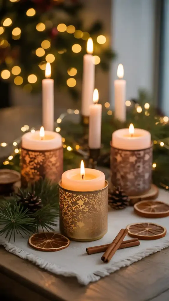 Scents play a huge role in creating festive ambiance. Choose candles with fragrances like pine, cinnamon, vanilla, or gingerbread. Display them in decorative holders on coffee tables or windowsills. Essential oil diffusers with holiday blends can also set the mood. The cozy glow and inviting aroma complete the sensory holiday experience.