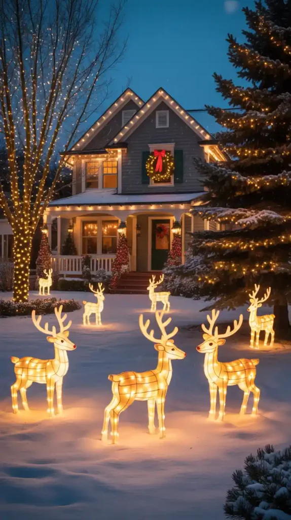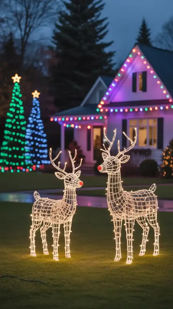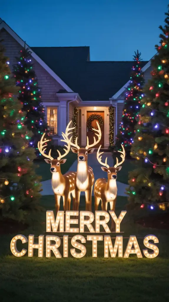 Spread holiday cheer to your neighborhood with outdoor decorations. String colorful lights on trees, bushes, and rooftops. Add illuminated reindeer, snowmen, or Santa figures to your yard. Wreaths on doors and glowing pathway lights make your home welcoming. Whether you go for classic white lights or vibrant multicolored displays, outdoor decorations bring magic to the whole community.