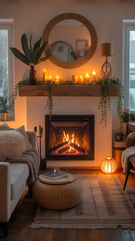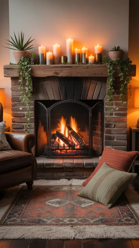 Decorate the fireplace mantle with candles, framed art, plants, lanterns, or seasonal décor. Add a soft rug, poufs, and cozy seating around it to create a warm gathering spot. Even in modern homes or small apartments, a compact electric fireplace can bring the same inviting effect without requiring extra construction.