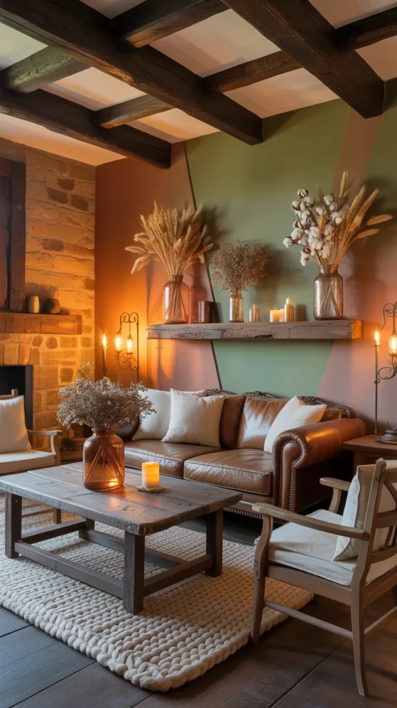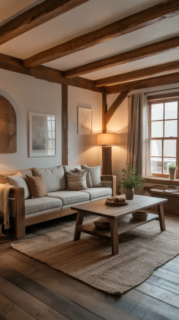 Adding wooden shelves, a rustic coffee table, woven baskets, wood-framed wall art, or warm wooden flooring can transform your entire space. Pair wood with soft lighting and neutral fabrics for the perfect balance. Rustic wood elements work well in any size room, making even modern interiors feel warm and welcoming.