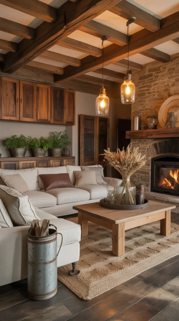 Wood is one of the most natural ways to add warmth and coziness to your home. Rustic décor embraces natural textures, imperfect grains, reclaimed wood furniture, wooden beams, farmhouse tables, and earthy tones. It brings nature indoors and creates a relaxing atmosphere that feels grounded and timeless.