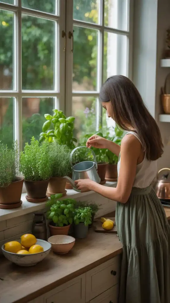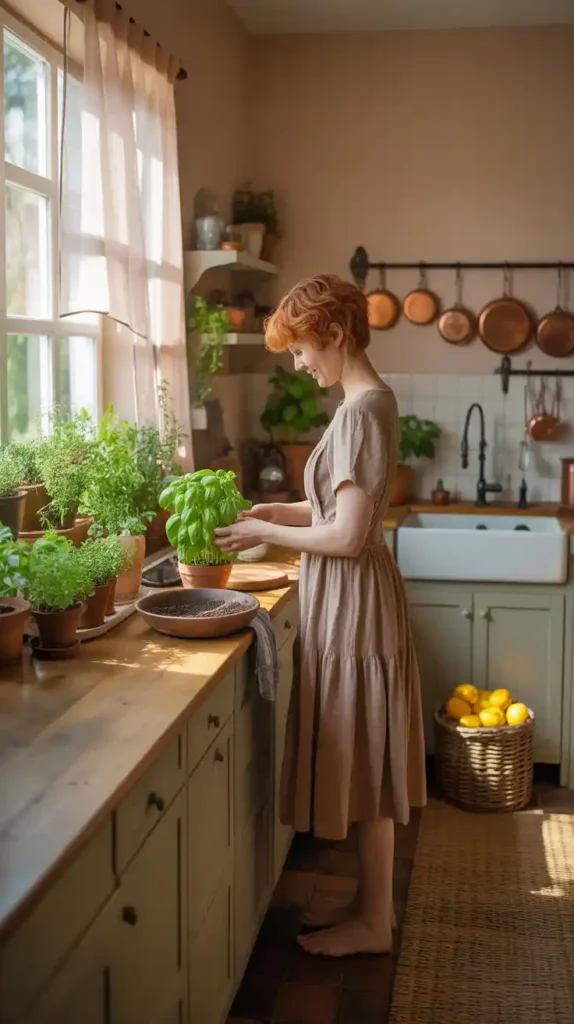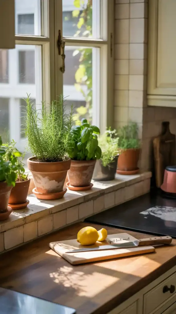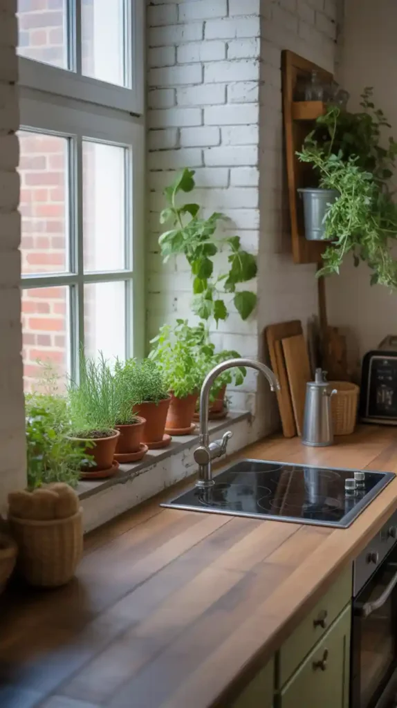 Plants bring life and freshness to any space. Small potted herbs on the windowsill not only look cozy but are also practical for cooking. Larger leafy plants or hanging planters can soften corners and make the kitchen feel more connected to nature.