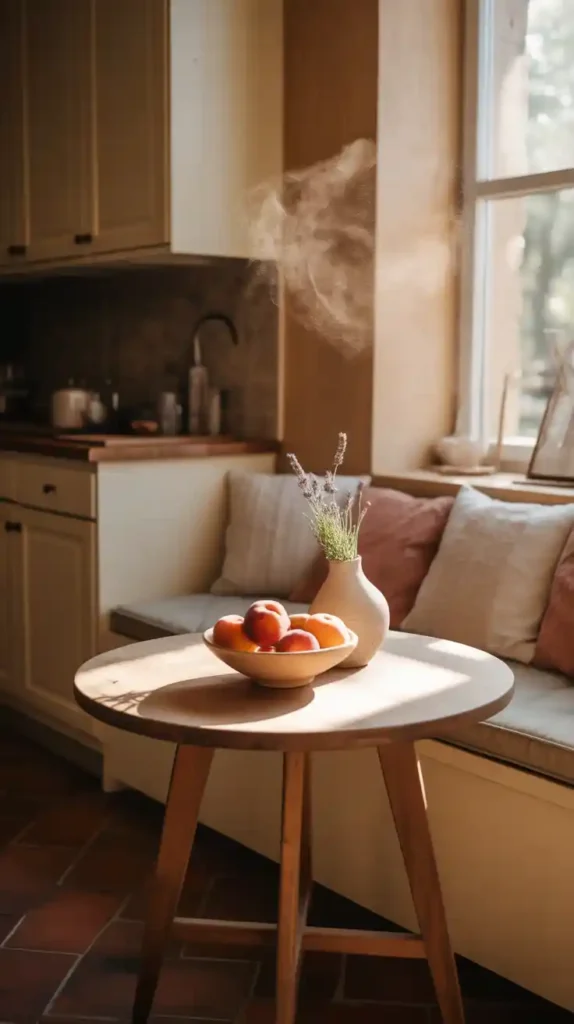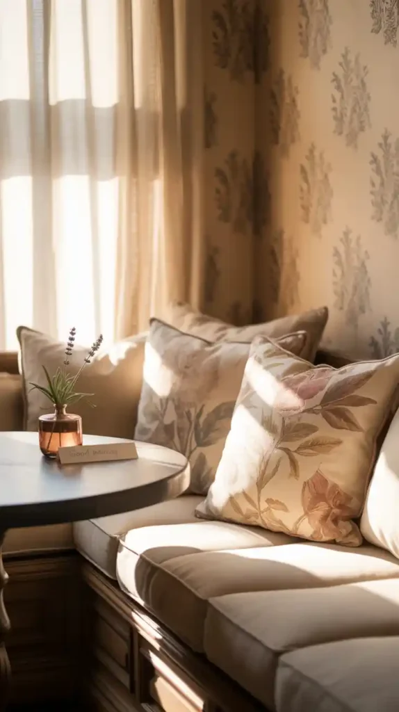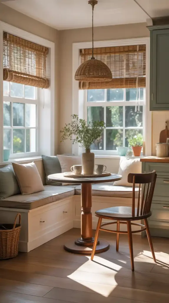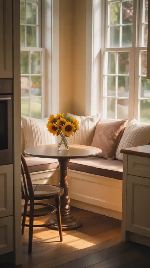 Nothing feels more inviting than a breakfast nook tucked into a corner with soft seating and cushions. A built-in bench with pillows creates a perfect spot for morning coffee or family meals. Add a small round table, cozy textiles, and natural light for ultimate comfort.