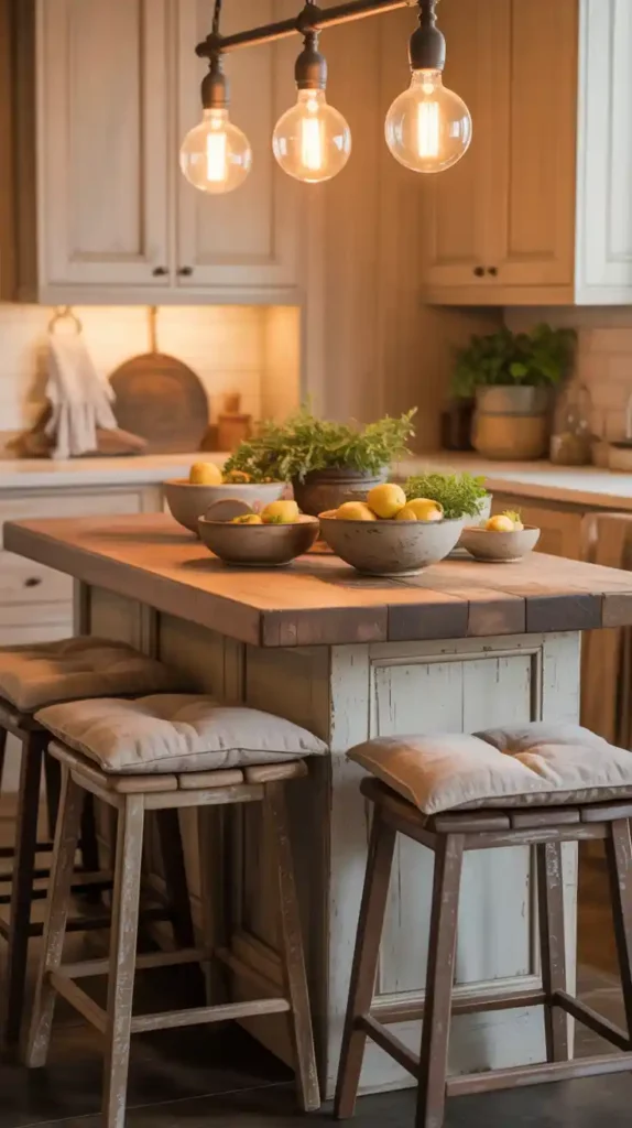 An island can be both functional and cozy. Add comfortable stools with cushions, and consider using natural materials like rattan or wood. A small island doubles as a cooking prep area and a warm gathering spot for family and friends.