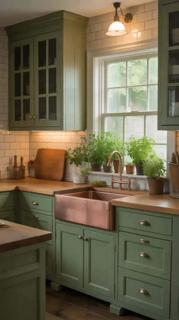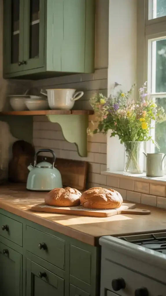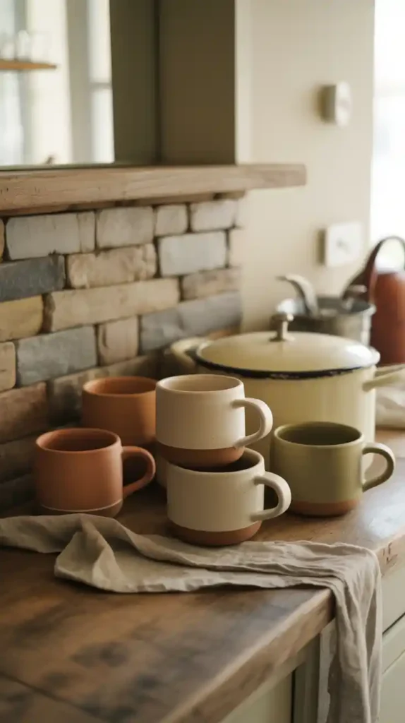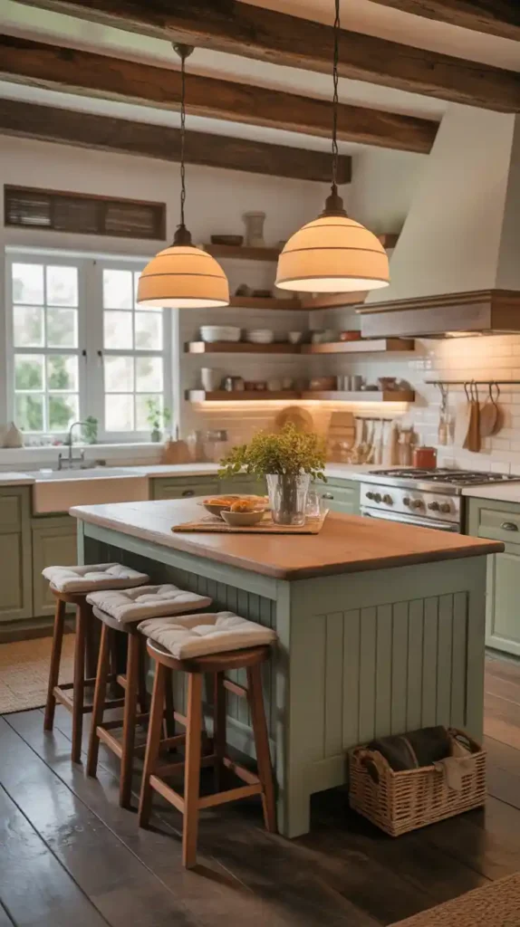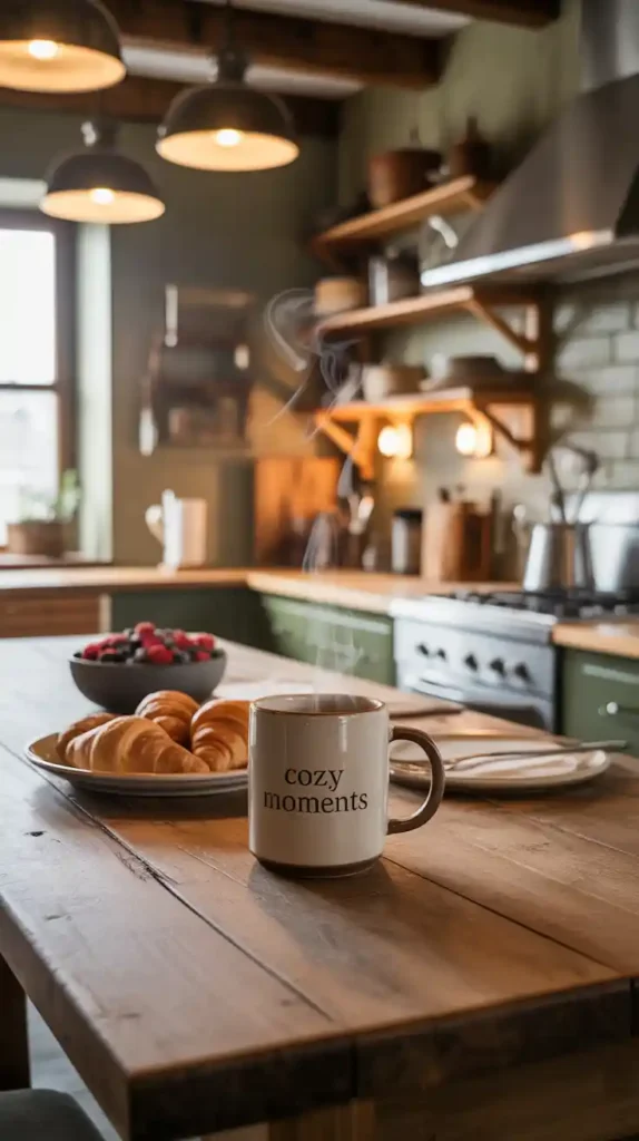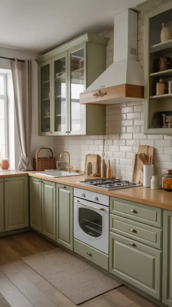Colors have a huge impact on coziness. Soft palettes like cream, sage green, blush, or warm gray make kitchens inviting and timeless. You can use these shades for cabinets, walls, or backsplash tiles to create a serene yet welcoming atmosphere.