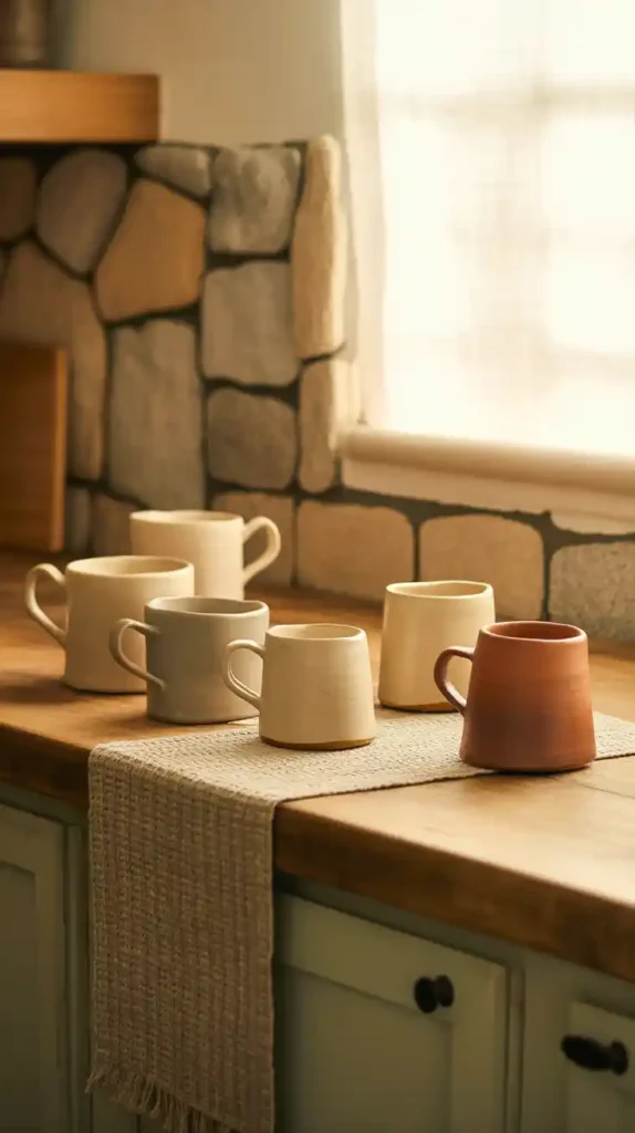 Cozy spaces thrive on layered textures—wood, stone, ceramic, and fabric. For example, combine wooden counters with ceramic tiles, metal handles, and linen curtains. This mix creates depth and a lived-in feeling.