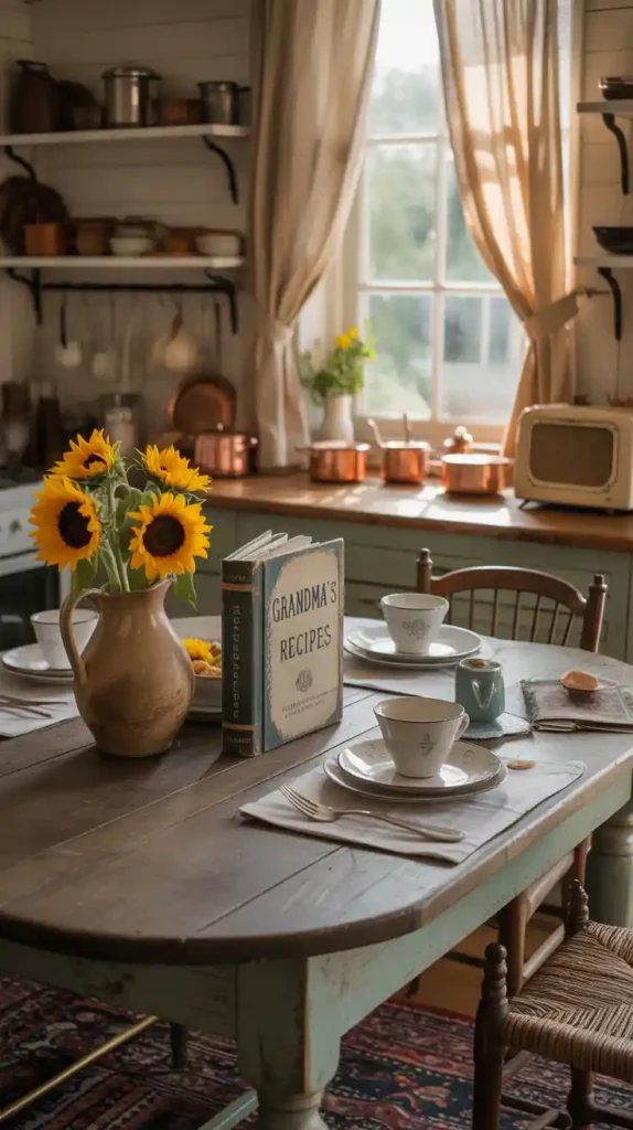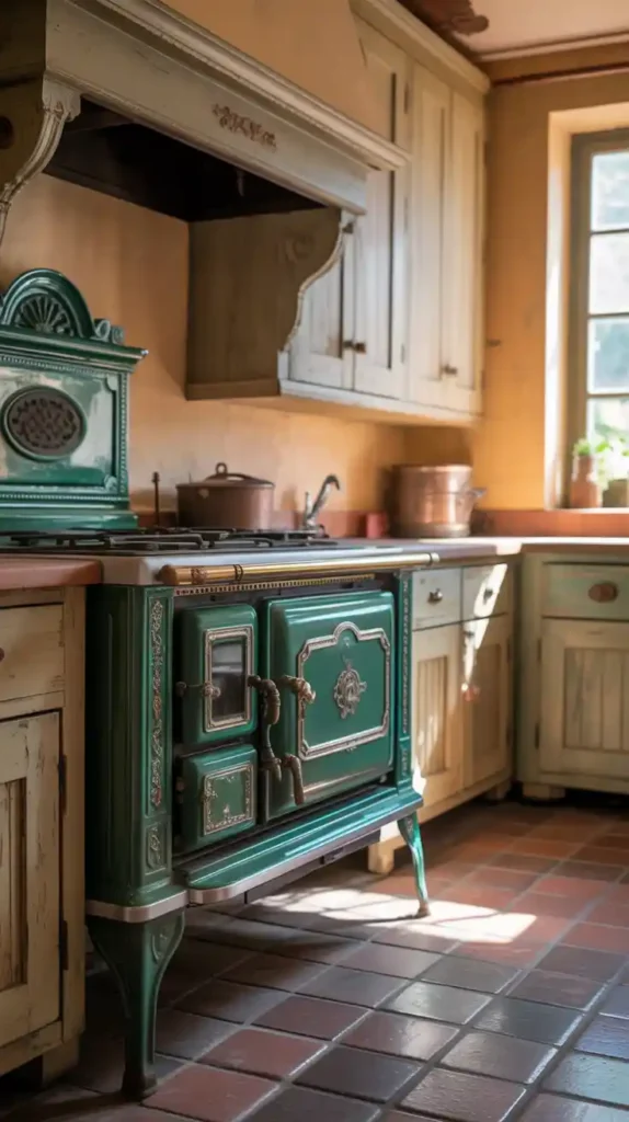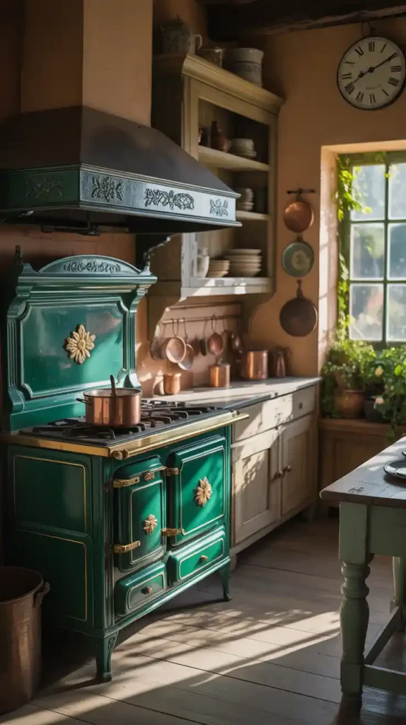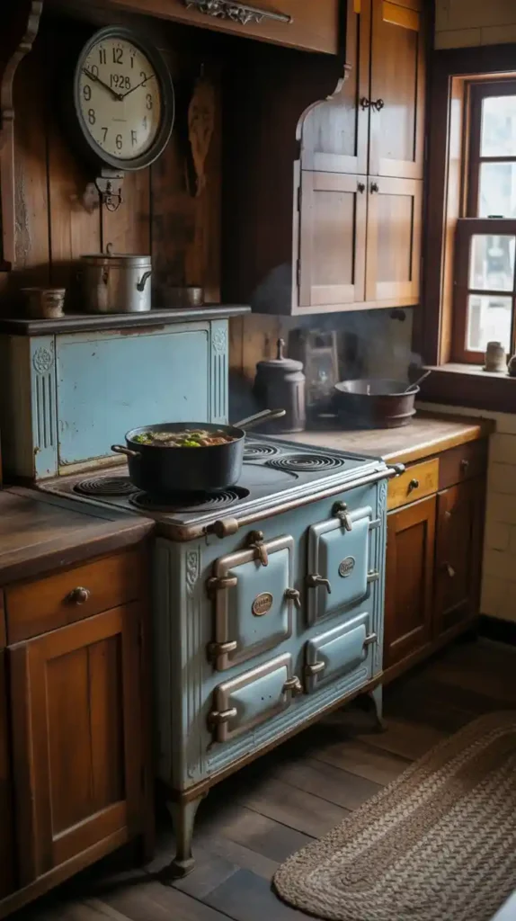 Add a bit of nostalgia with vintage pieces like antique wall clocks, retro stoves, or rustic decor. A cozy kitchen feels lived-in, and vintage finds add character and charm that modern finishes often lack.
