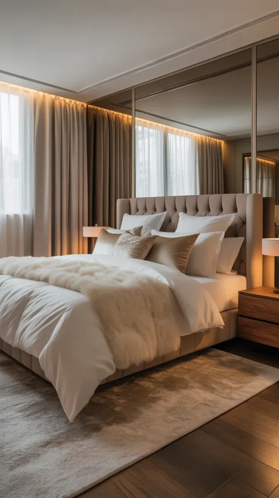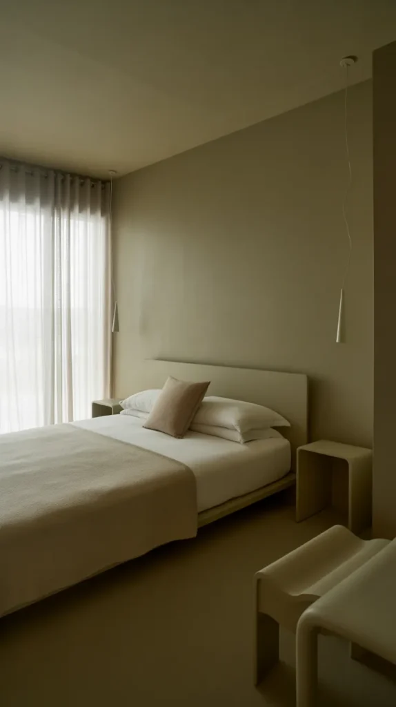 High‑quality fabrics, minimal decor, and clean lines make the space feel luxurious yet calm. It’s dreamy in a refined, sophisticated way.