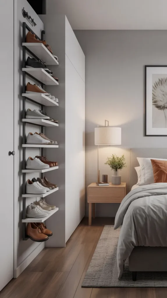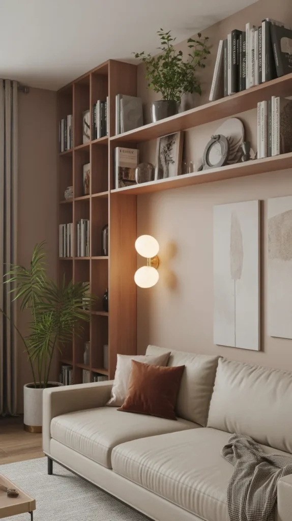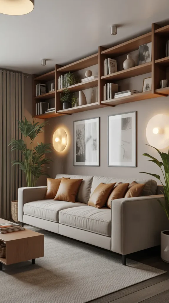 Walls aren’t only for art—they’re storage gold. Floating shelves and vertical organizers free up floor space while adding a decorative touch.