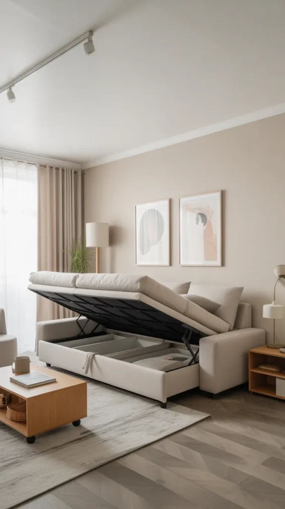 Want a clutter-free aesthetic? Hidden storage creates clean lines while hiding everyday items.